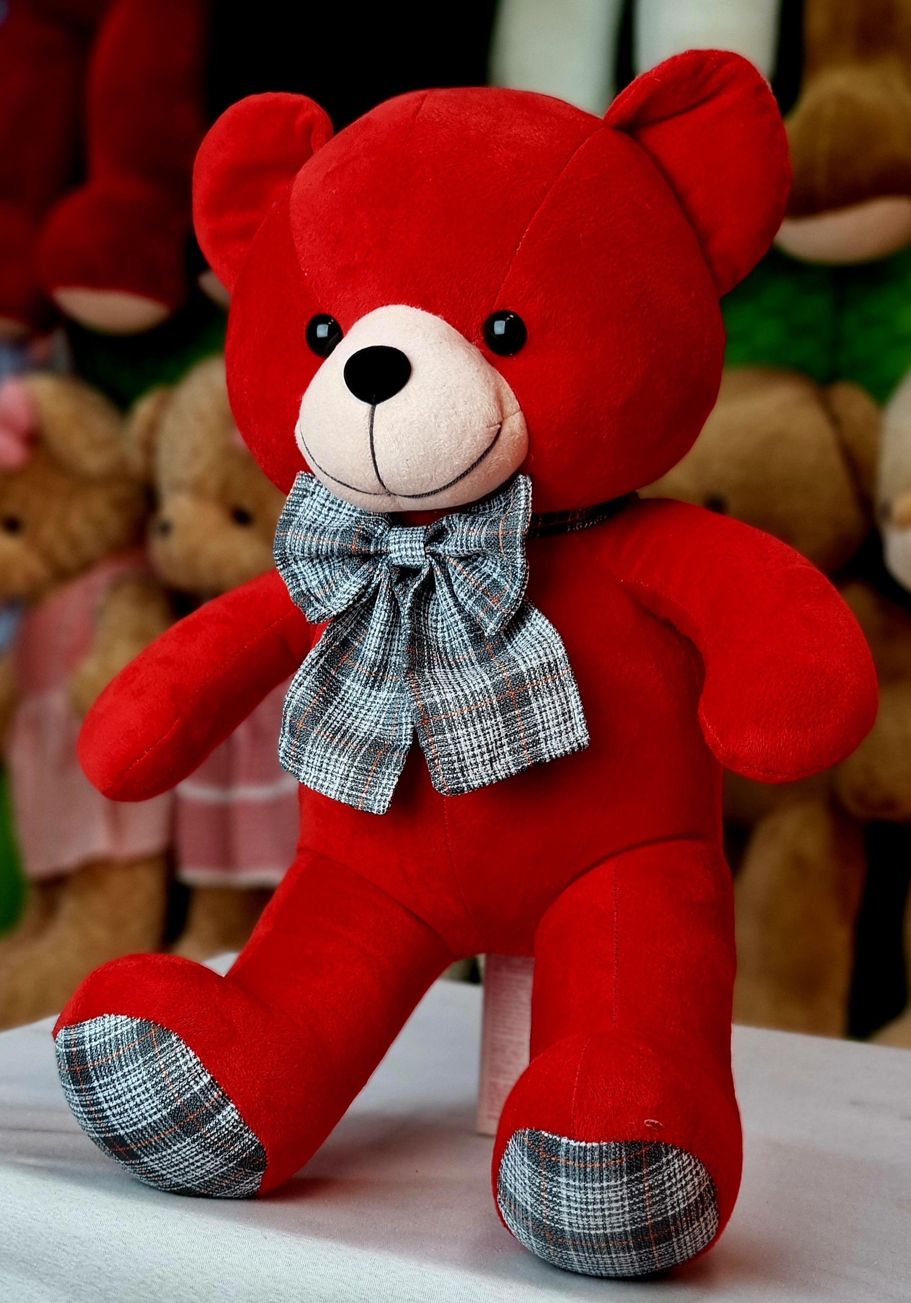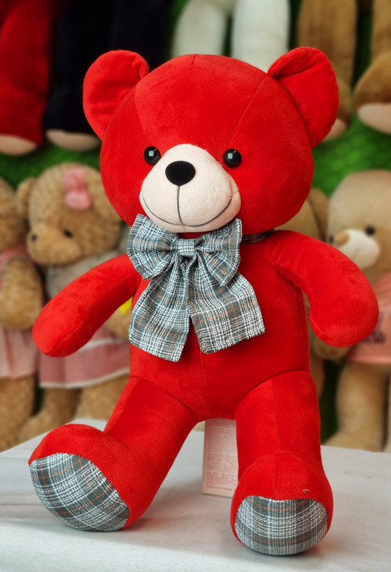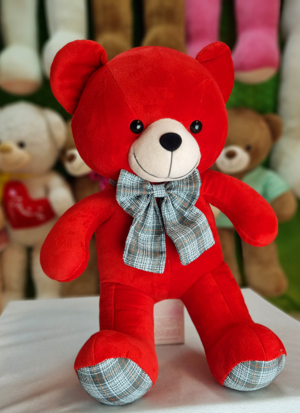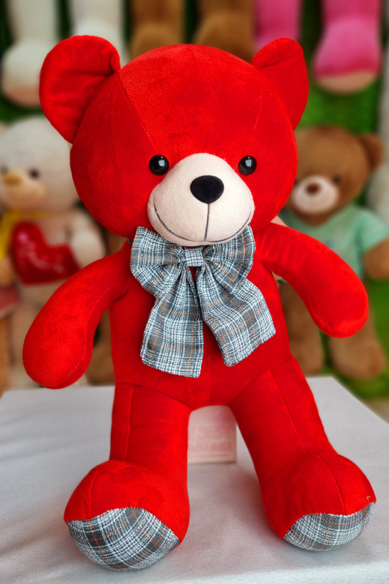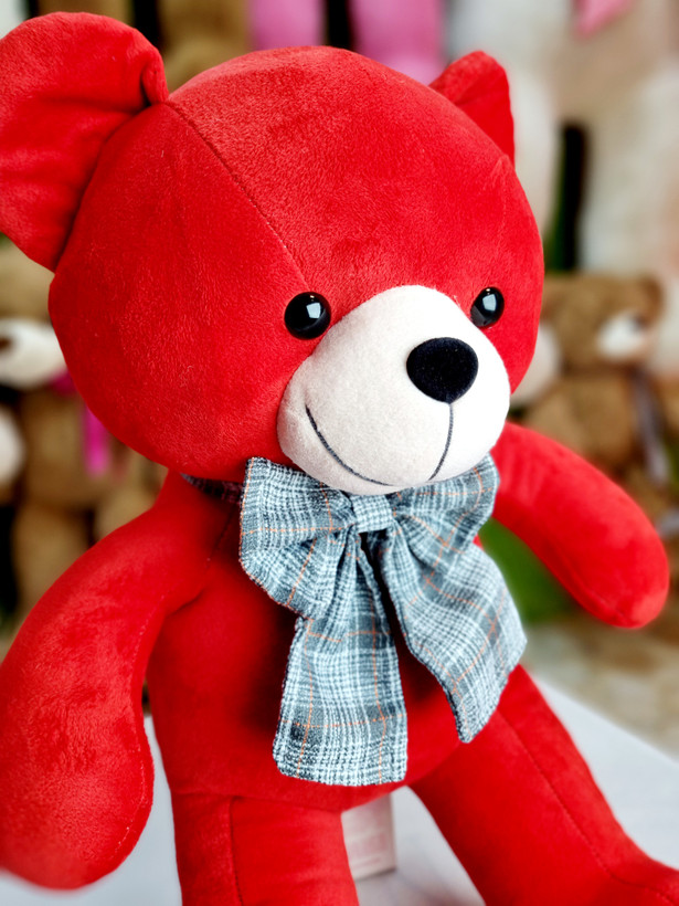 این خرس مخصوص ولنتاین طراحی و دوخته شده با پارچه نیو سافت بسیار نرم و لطیف با یه پاپیون خوش ژست چهارخونه طوسی رنگ که جذابیت این عروسک رو چند برابر کرده.