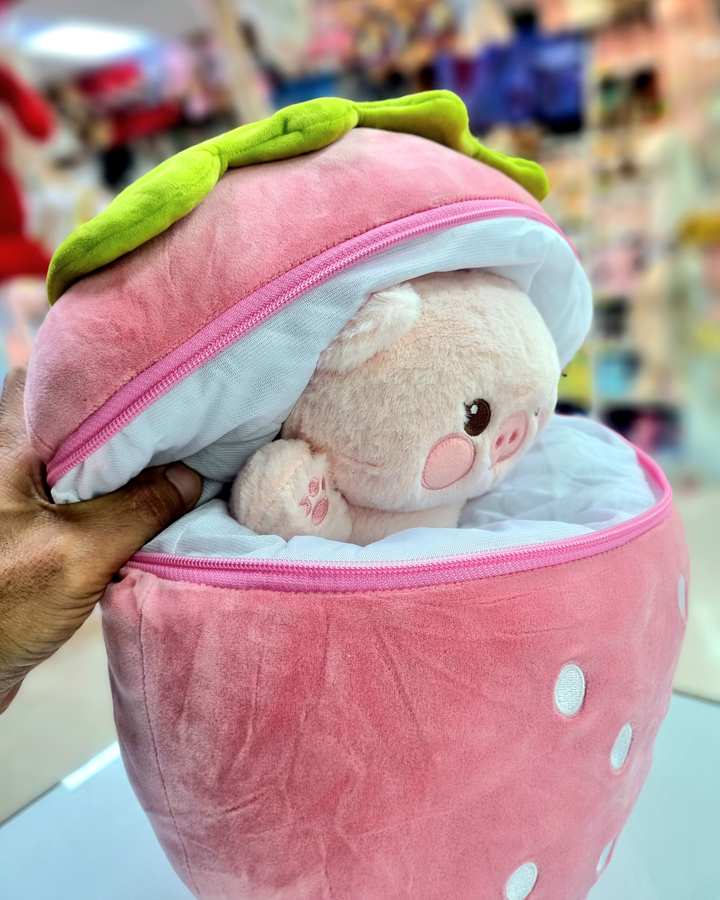 عروسک توت فرنگی طرح سوپرایزی با عروسک خوک
